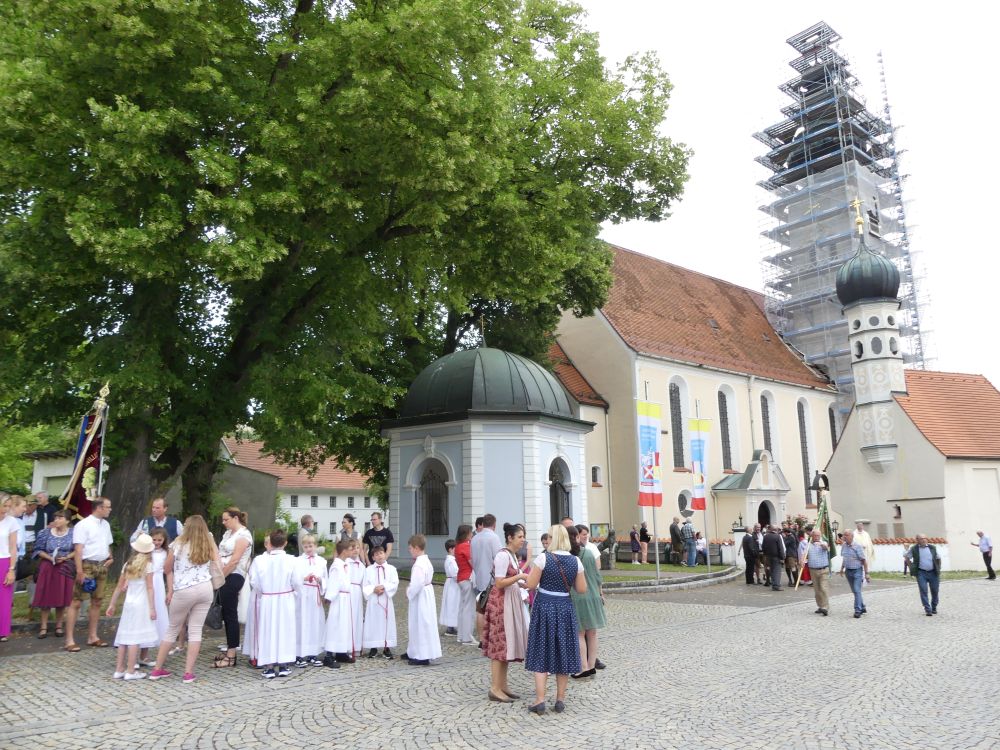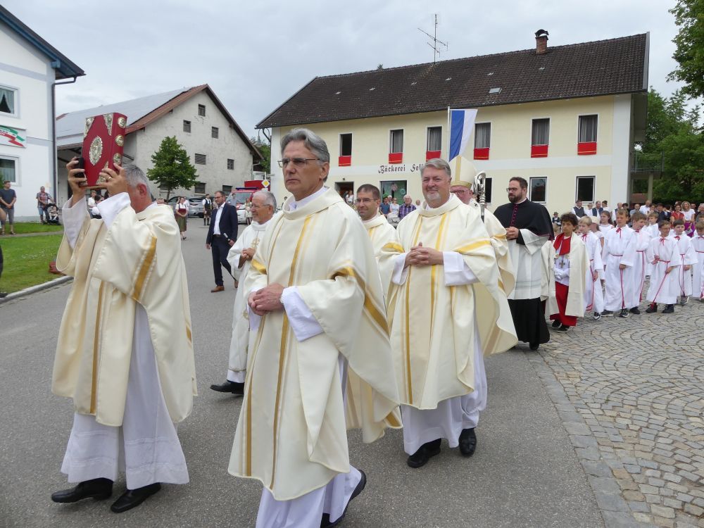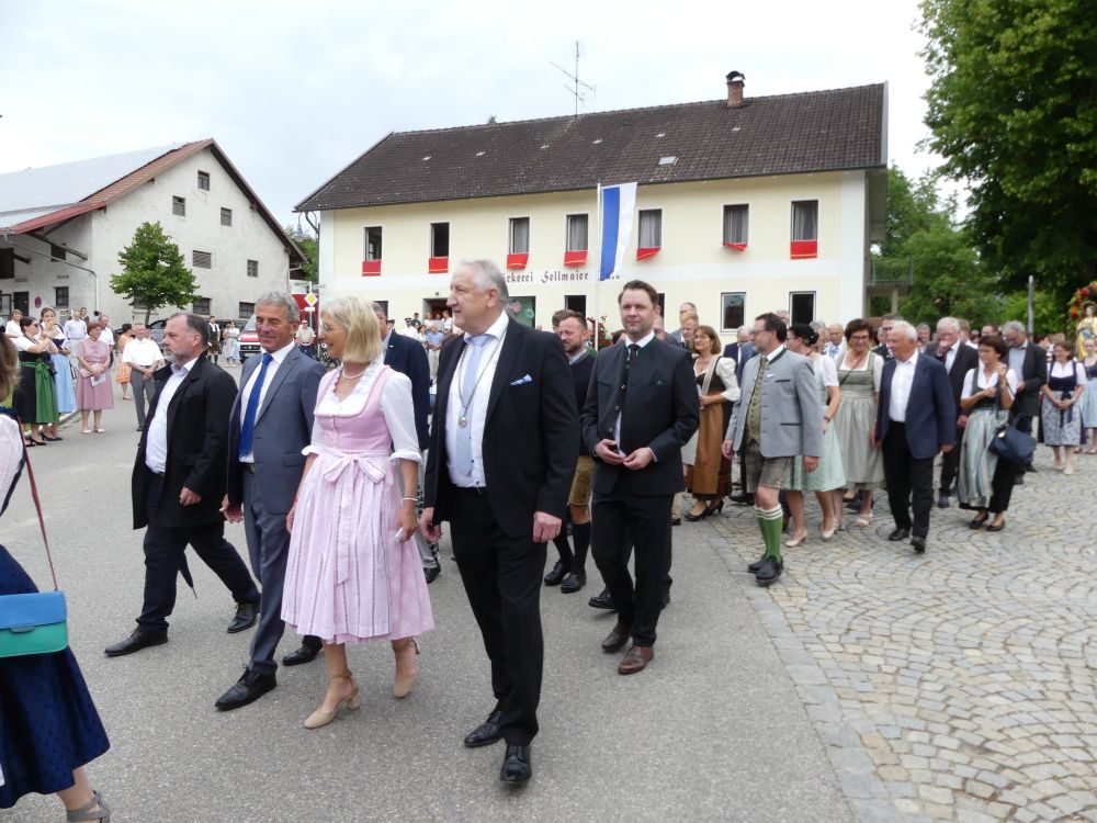 Nach dem TeDeum und der „Bayernhymne“, ging‘s in einem feierlichen Auszug im Beisein der Ortsvereine und zahlreicher Fußwallfahrergruppen zurück zur Wallfahrtskirche. Hier wurde der Hohe Gast darum gebeten, sich in goldenen Büchern der Gemeinde Fraunberg und des Landkreise Erding einzutragen.