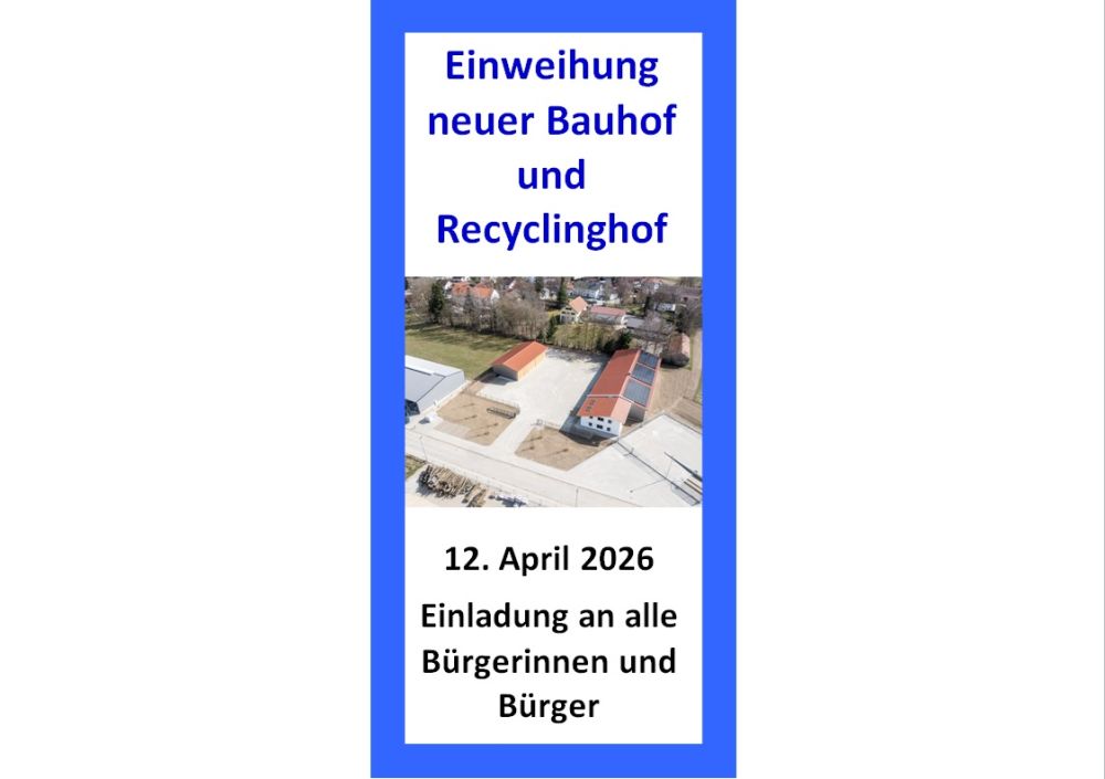Die Gemeinde Fraunberg lädt alle Bürgerinnen und Bürger herzlich zur feierlichen Einweihung des neuen Bauhofs und Recyclinghofs in Reichenkirchen ein. Die Veranstaltung findet am Sonntag, den 12. April 2026, um 13.00 Uhr im Gewerbegebiet Pillkofen, Felixanger 6 und 8 in 85447 Fraunberg, statt.