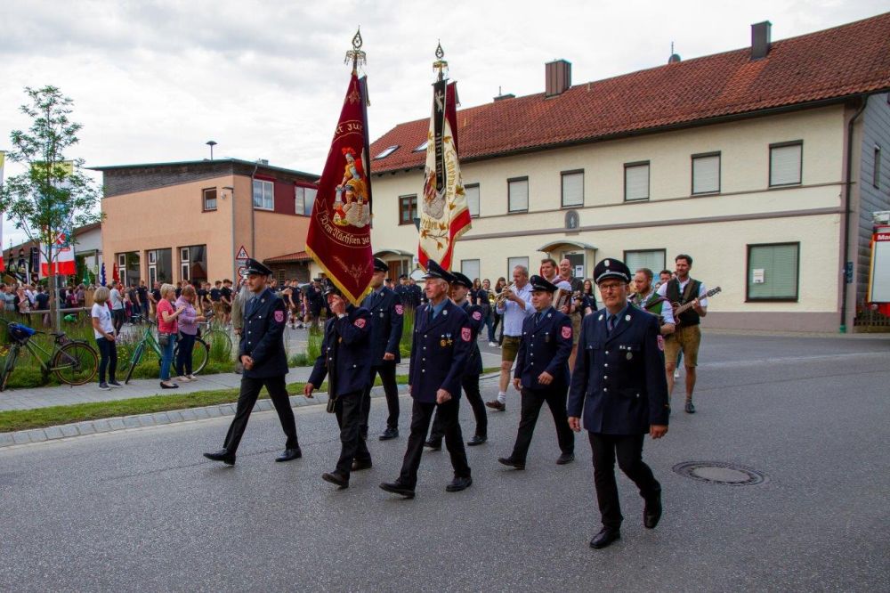 Aber die Kameradinnen und Kameraden der Reichenkirchener Schutztruppe zeigten Mut und Charakter und trotzten den Umständen. Schließlich konnte am Festsonntag nach dem Festgottesdienst – wegen Regen im Festzelt abgehalten – sogar noch der Umzug durch die geschmückten Straßen des Ortes stattfinden. Zahlreiche Vereine aus dem Gemeindegebiet und Feuerwehrabordnungen aus der näheren Umgebung nahmen mit ihren Fahnenabordnungen und Vereinsmitgliedern daran teil.
