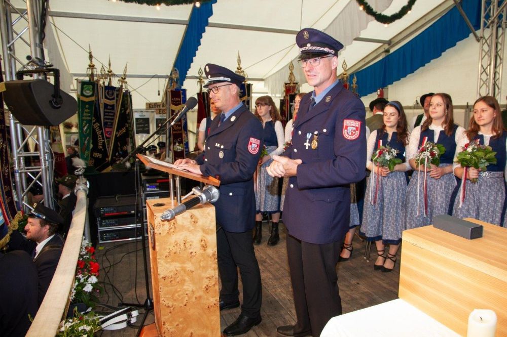 Unter den vielen Festbesuchern waren auch Bürgermeister und Schirmherr Hans Wiesmaier, stellvertretende Ministerpräsidentin Staatsministerin Ulrike Scharf, Landrat Martin Bayerstorfer, MdB Andreas Lenz sowie von der Kreisfeuerwehrebene, Kreisbrandrat Florian Pleiner, Kreisbrandinspektor Manfred Schreiber und Ehrenkreisbrandrat Willi Vogl.