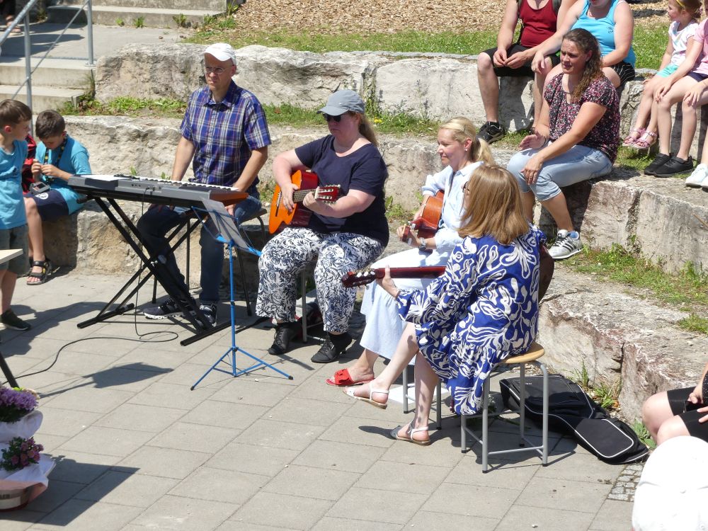 Die Gäste hatten im Anschluss die Gelegenheit, sich über die Aktionen der vergangenen Woche zu informieren. Im WG-Raum, in der Villa Kunterbunt und in der Mensa waren Aktivstationen mit Bezug zum Römerleben aufgebaut. Gegen eine Spende konnten verschiedene selbstgefertigte Gegenstände erworben werden. Der Erlös ist für den WWF, das Kinderheim St. Josef in Wartenberg und für Hochwasseropfer bestimmt.