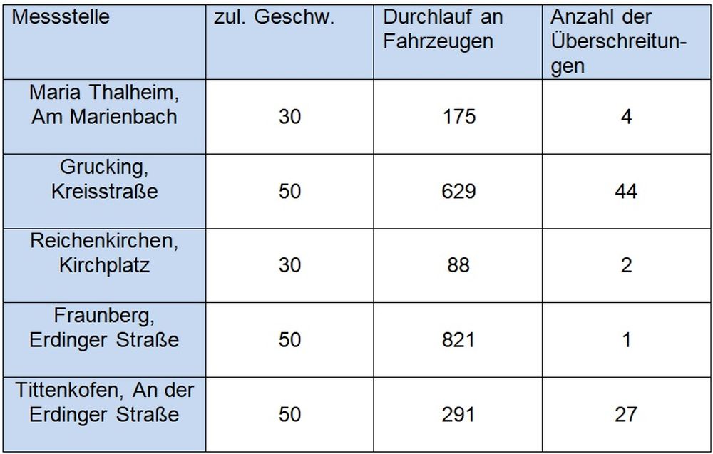 Ergebnisse der Geschwindigkeitsmessungen im Oktober 2025: